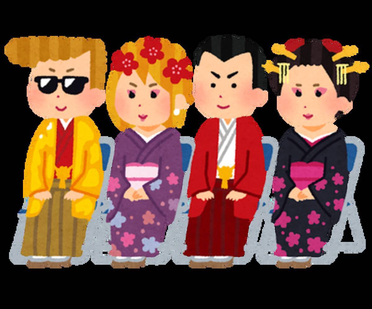 成人式 成人の日のイラスト無料フリー素材 成人式の記念撮影の無料イラスト素材 イラストイメージ 成人式のイラスト素材 成人式イラスト No 無料イラストなら イラストac 派手な衣装で椅子に座る成人たちのイラスト かわいいフリー素材集成人式 成人の日 新成人 のイラスト素材 無料フリーイラスト素材集 Frame IllustMay 15, 21 · 成人 式 イラスト 無料 3290 成人式 イラスト集 商用無料 フリーイラスト 二十歳になり新年の大きなイベントと言えば「成人式」ではないでしょうか ポストカードや成人式のお知らせなどを華やかにするためにイラストが必要になるのではないでしょうか